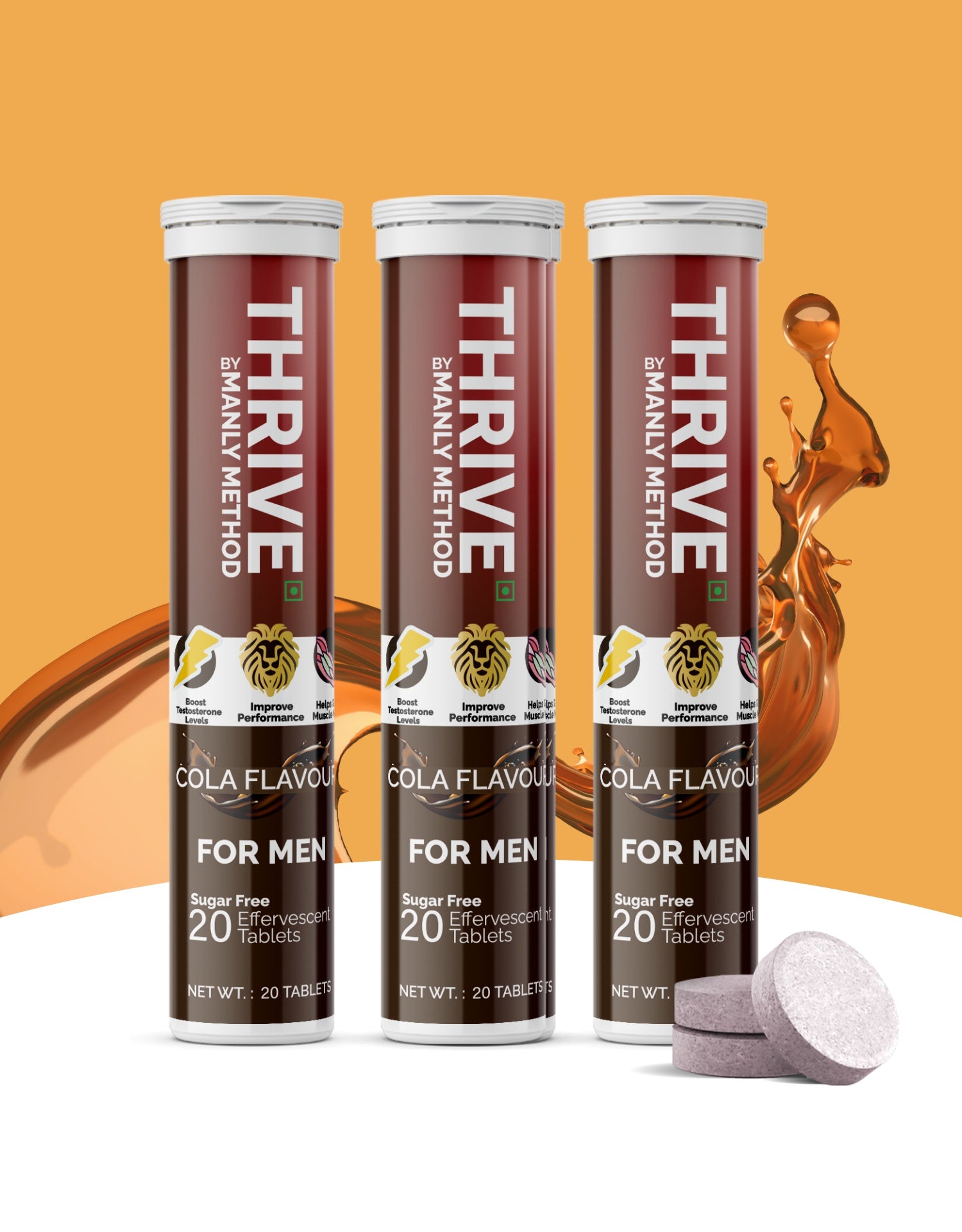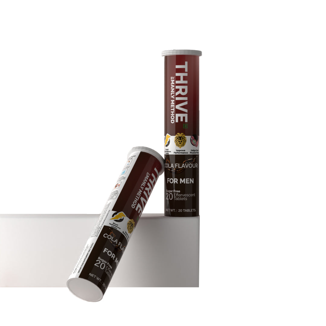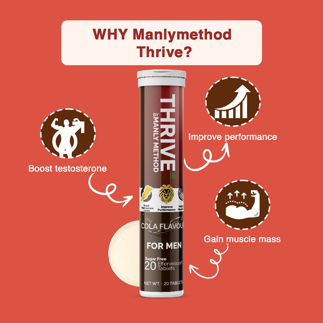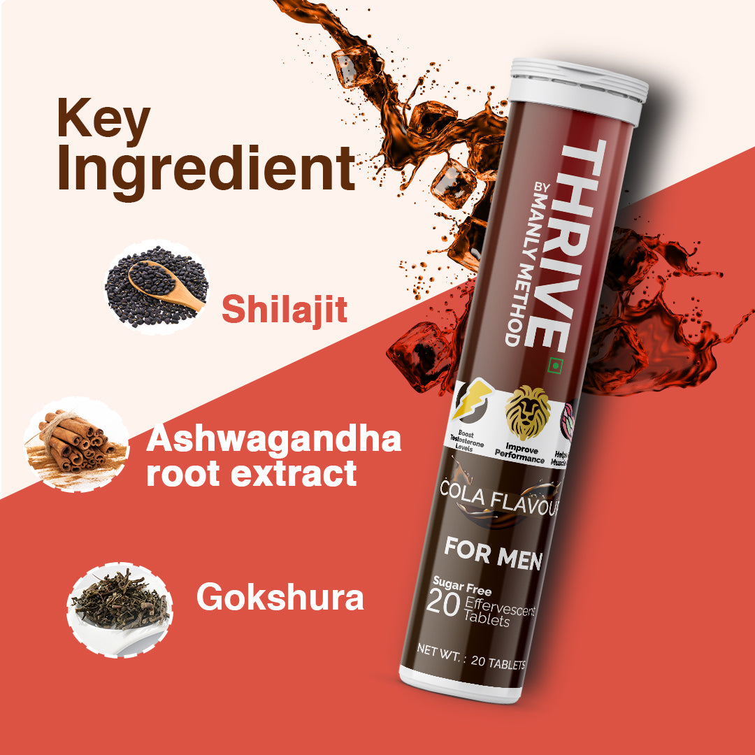 Introducing Manly Method’s Effervescent Men's Performance Tablets-THRIVE, a meticulously crafted blend of potent natural ingredients designed to enhance men performance and overall vitality. Formulated with the powerful trio of Shilajit, Gokshura, and Ashwagandha Root Extract, our tablets are dedicated to promoting male well-being and boosting confidence in the bedroom.